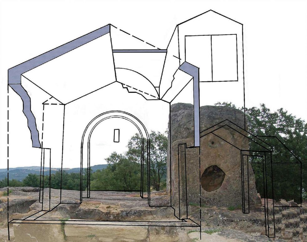 Aparte del conjunto de tumbas, hay vestigios de un templo en la zona más elevada del afloramiento rocoso. Tiene tres estancias: el santuario, el presbiterio y la nave. La construcción religiosa se completa con un pórtico que se abría al sur en el que se disponen curiosamente la mayoría de las tumbas infantiles.