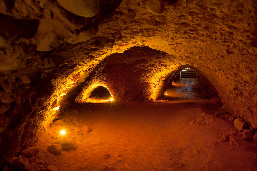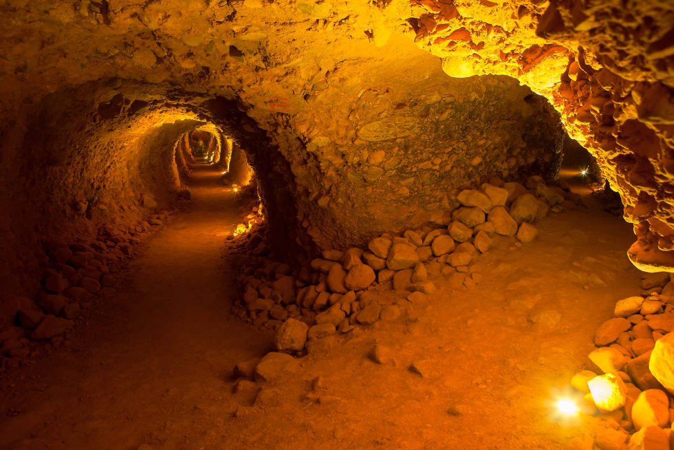 Esta forma de trabajo era la más común en los sectores en los que los estratos más ricos en oro –60 a 300 mg de oro por m³– aparecen cerca de la superficie, pero evidentemente no servía en aquellos lugares en los que los lechos ricos en oro están a varios metros bajo el suelo. En este último caso los romanos utilizaron lo que Plinio describió como ruina montium y que básicamente consiste en excavar una red de galerías subterráneas comunicadas entre sí tanto vertical como horizontalmente y, muy importante, sin salida hacia el exterior salvo por un solo orificio en el que como veremos se introducía el agua en tromba. Para la planificación de los trabajos necesarios en Las Médulas, así como para establecer la red de canales y depósitos es muy probable que contarán con los ingenieros del cercano campamento legionario de León. Uno de los depósitos, el que serviría para la última fase de las explotación de Las Médulas, está junto al mirador de Orellán. Tenía una capacidad para 16 millones de litros de agua.
