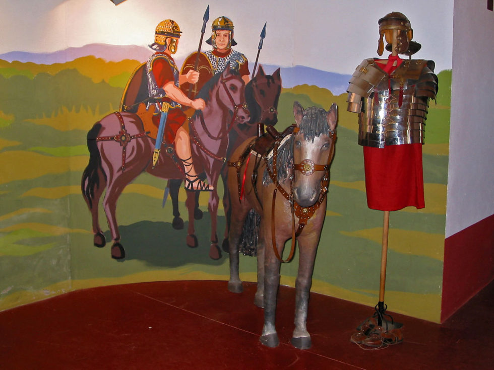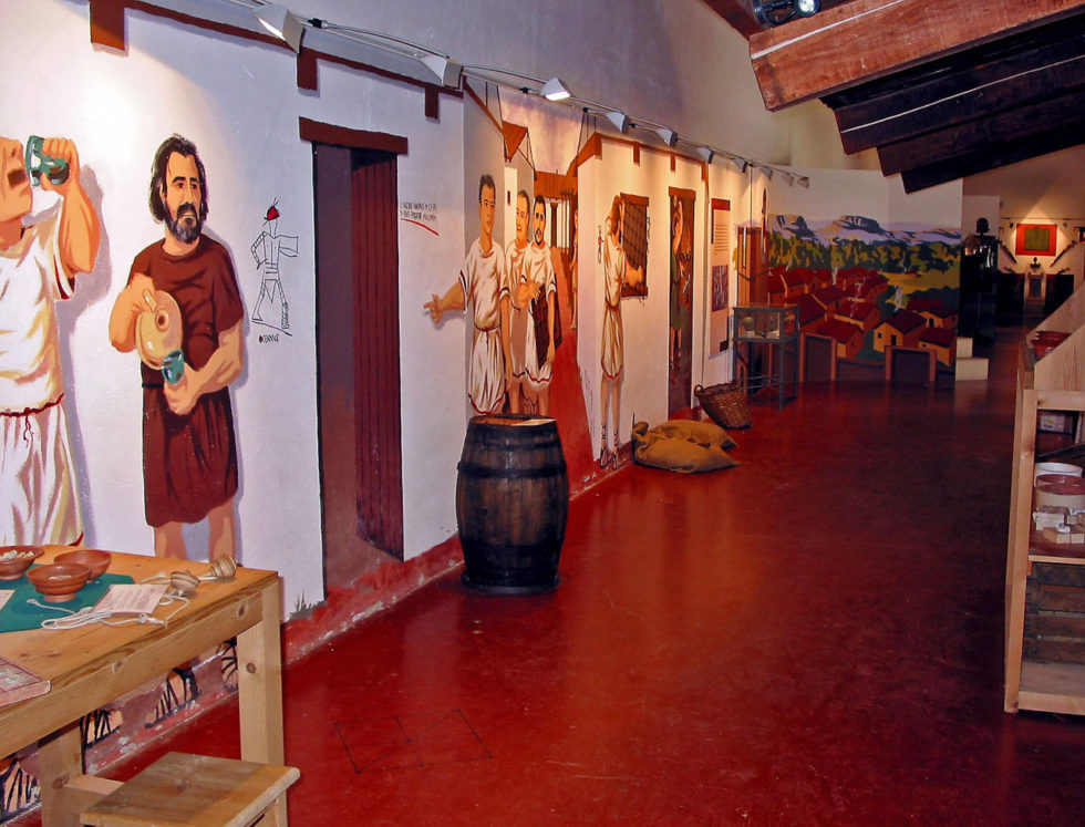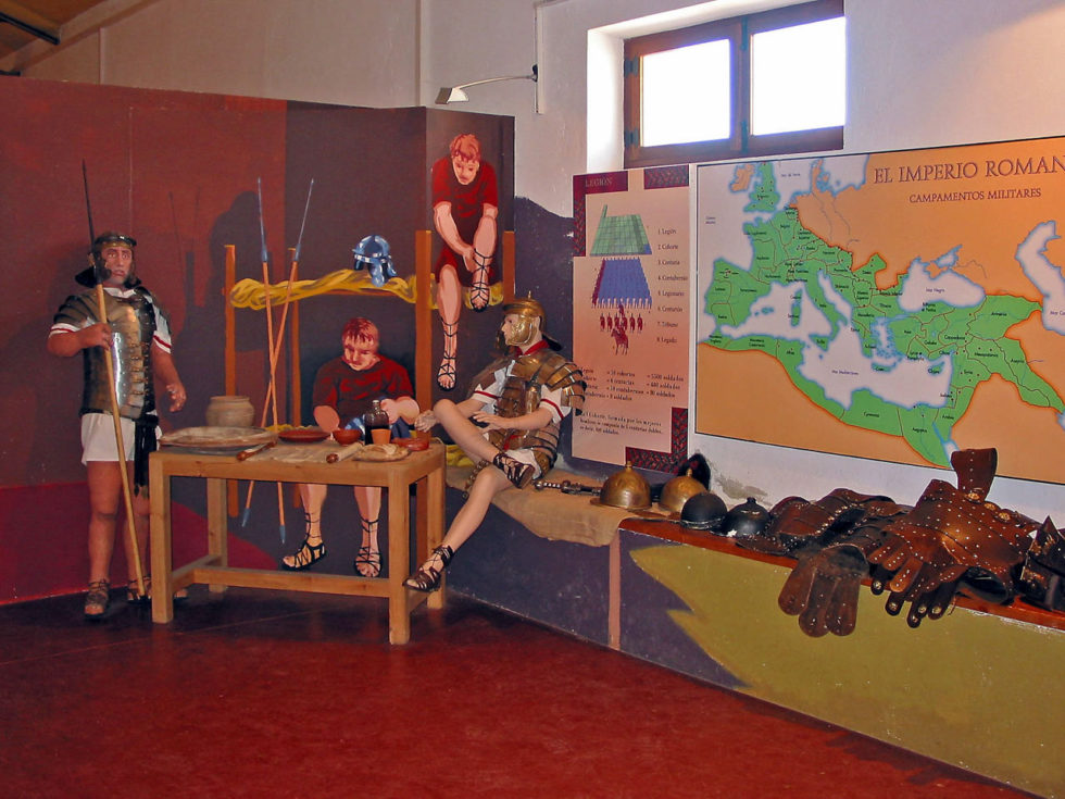 También se han recreado, como referencia a la vida militar, una torre defensiva y la palestra, lugar de entrenamiento de los soldados, junto a un sinfín de elementos de la indumentaria y del armamento: cascos, escudos, armaduras, etc. que son manejados por los visitantes. La vida civil está ampliamente representada con la reproducción de buena parte de las impresionantes cerámicas halladas durante las excavaciones, con juegos de mesa de época romana, túnicas y otras vestimentas, etc. En definitiva no se trata de una exposición para observar objetos en vitrinas, sino para aprender de la vida militar y civil romana de una manera mucho más participativa.