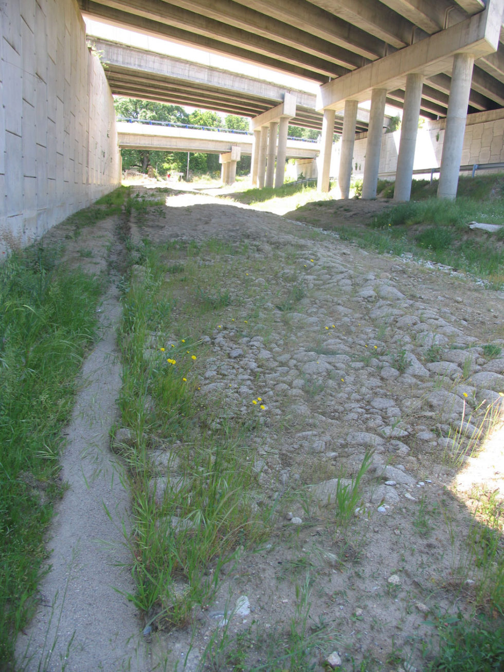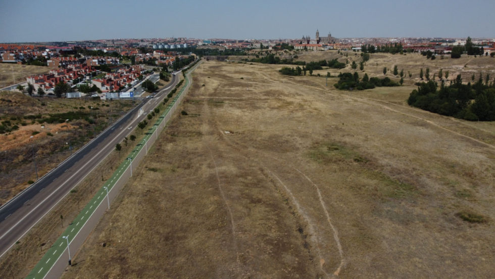 Ya en el municipio de Salamanca, en un mirador contemplamos el lomo de la calzada con la silueta al fondo de la ciudad. El itinerario continúa bajo el túnel del viaducto hasta llegar a un tramo reconocible del camino romano musealizado bajo el siguiente viaducto.