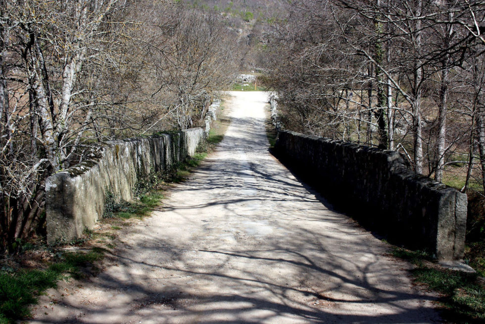 Un poco más adelante, en un segundo mirador, una fuente restaurada y un hito dedicado a la trashumancia dan cuenta de esta actividad desplegada por el Concejo Real de la Mesta sobre la antigua vía reconvertida en cañada de ovejas merinas. La senda trascurre más adelante sobre el propio lomo de la calzada y, una vez atravesado el túnel bajo la vía del tren, la calzada está perdida.