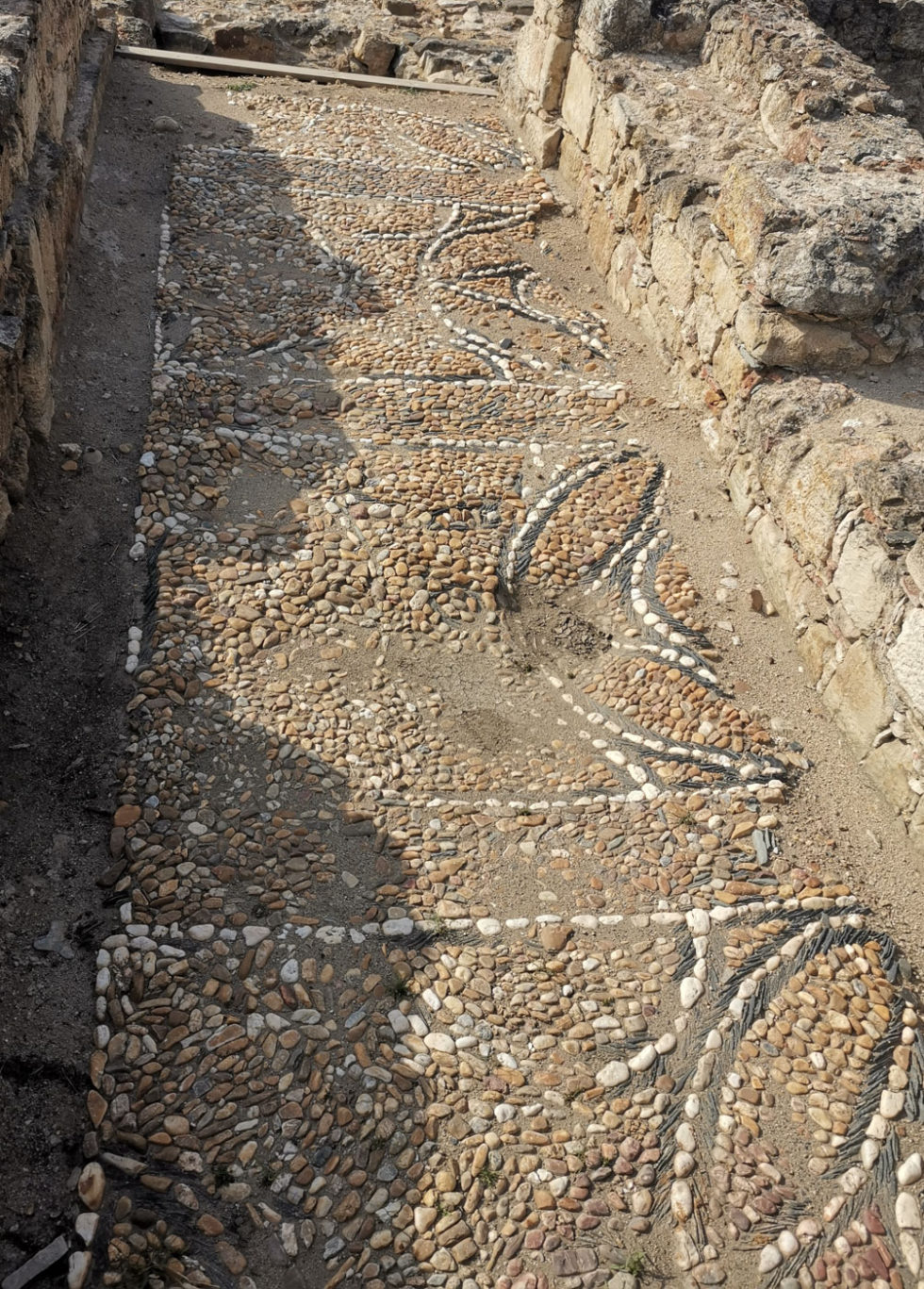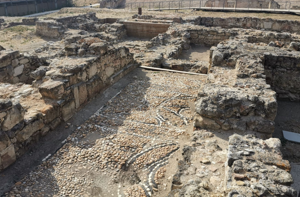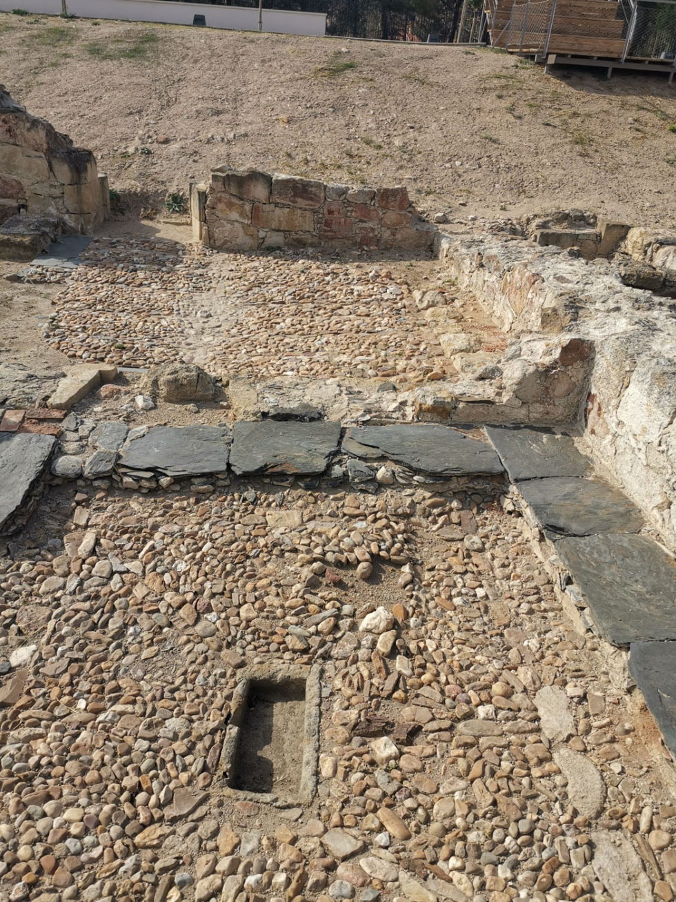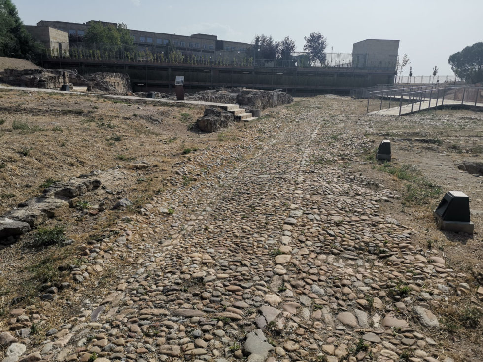 La mayor parte de la iglesia de San Pedro queda bajo la calle Balmes y en el espacio musealizado solo observamos el atrio por el que se accedía al templo desde el convento.