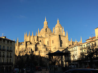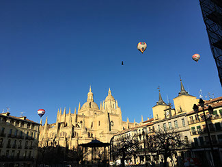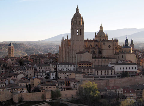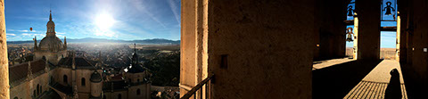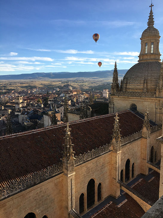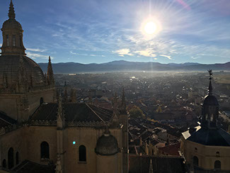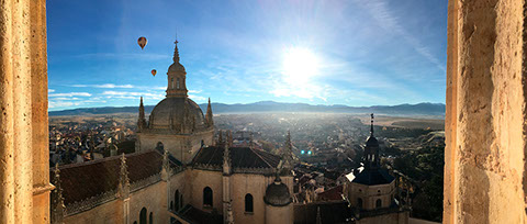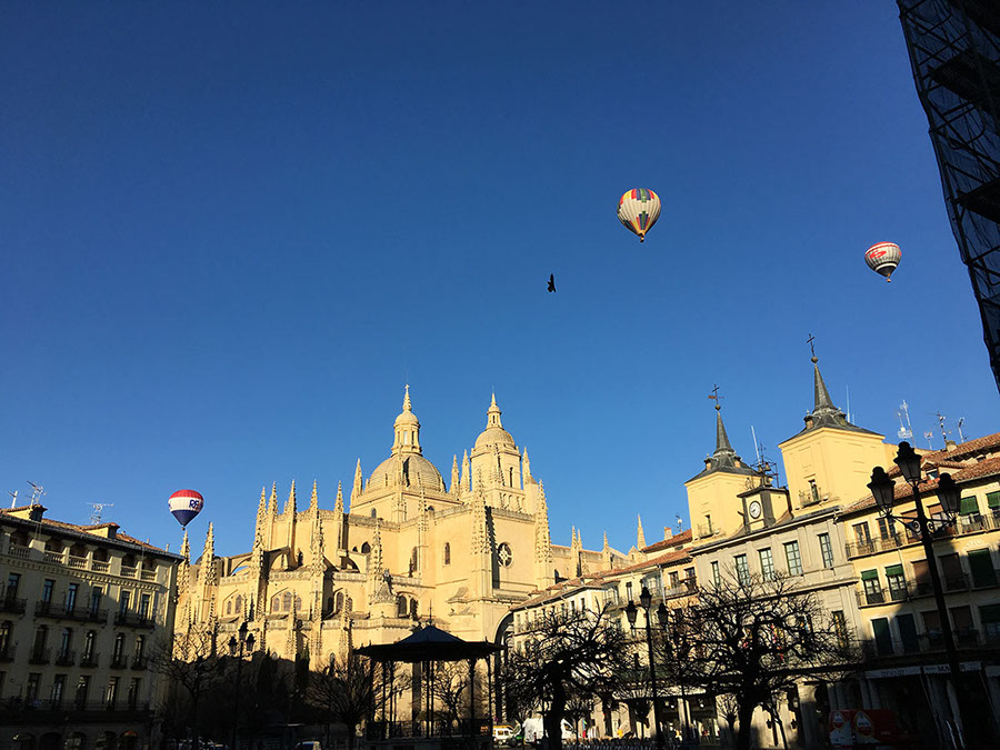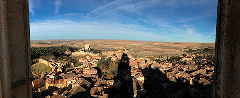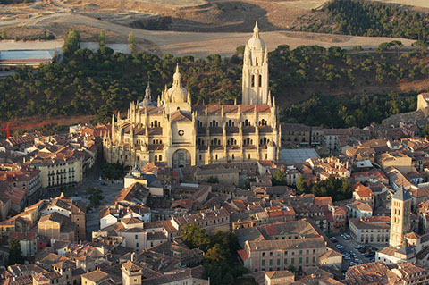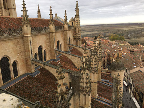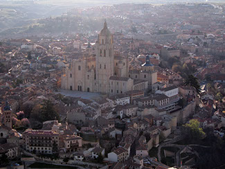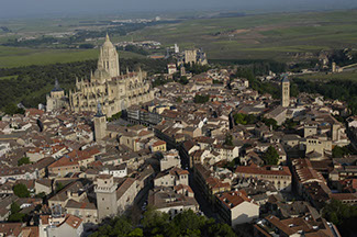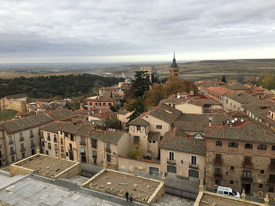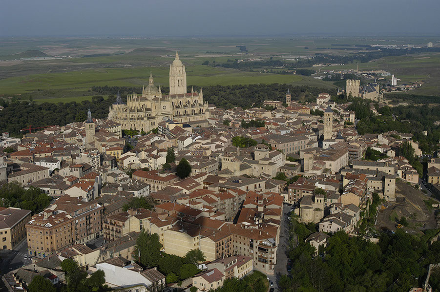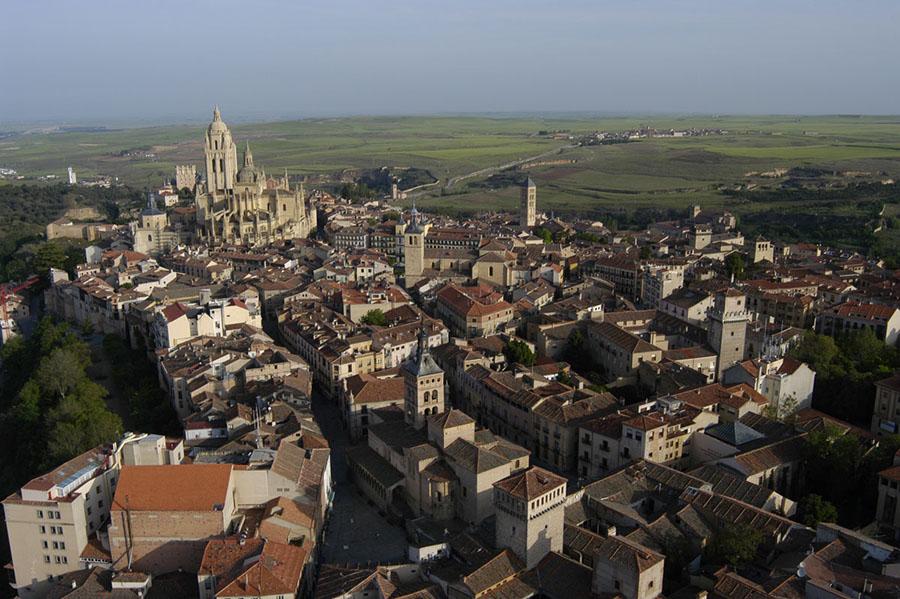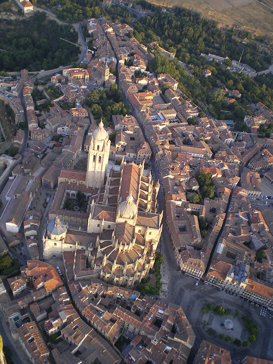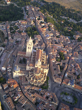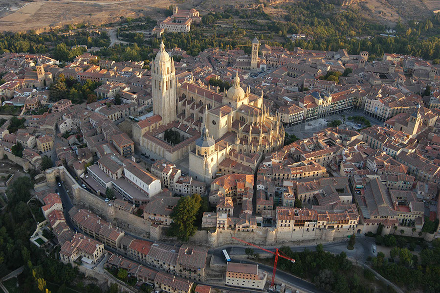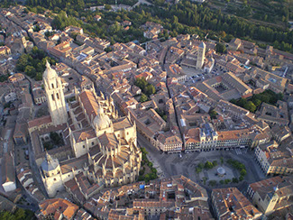 Vista general de la plaza Mayor de Segovia desde las cubiertas de la Catedral.
