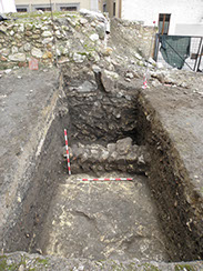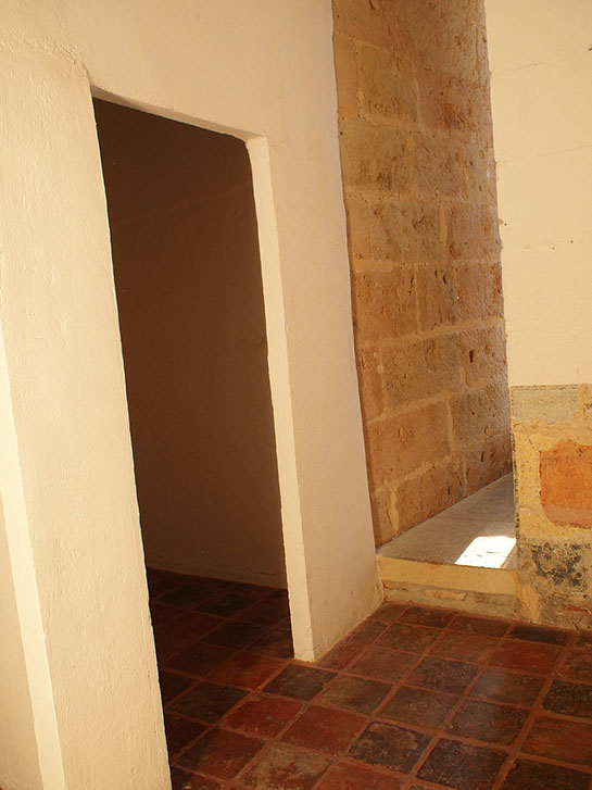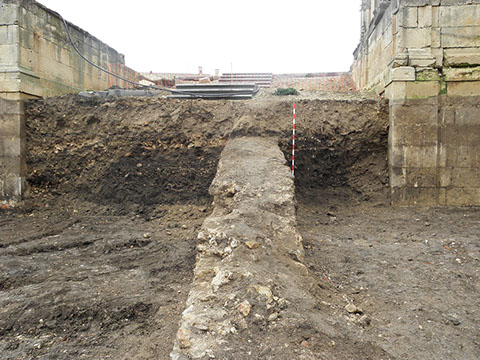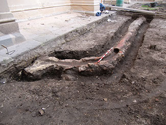 Canalización realizada con tejas empleada para evacuar las aguas de la lluvia que se recogían en el claustro.