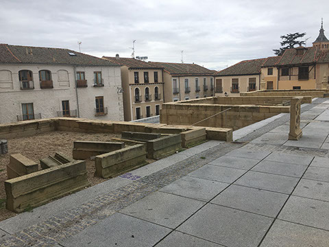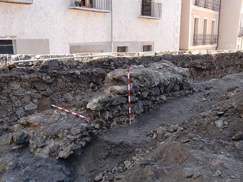 Muro localizado en el extremo sur del enlosado y que pertenecía a las antiguas construcciones (convento de Santa Clara y viviendas de la Judería) que fueron demolidas para ubicar la nueva Catedral.