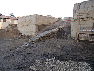 Detalle de los cubos que cierran la plataforma del Enlosado en su lado sur.