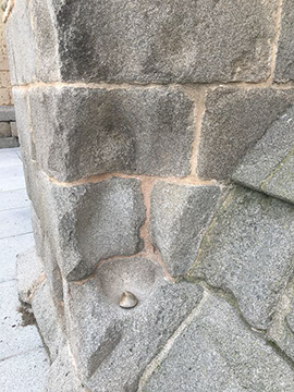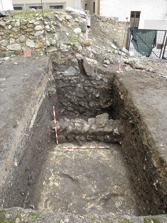 Conducto de mampostería que servía para evacuar el agua del claustro hacia la calle Rrefitolería.
