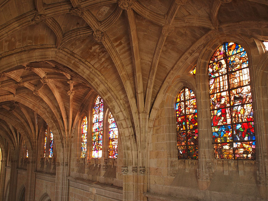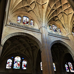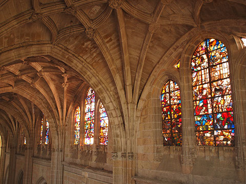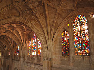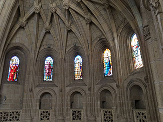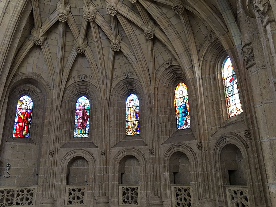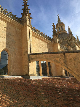 Detalle del exterior de la nave lateral sur, donde se observa el arbotante y las vidrieras al exterior.