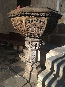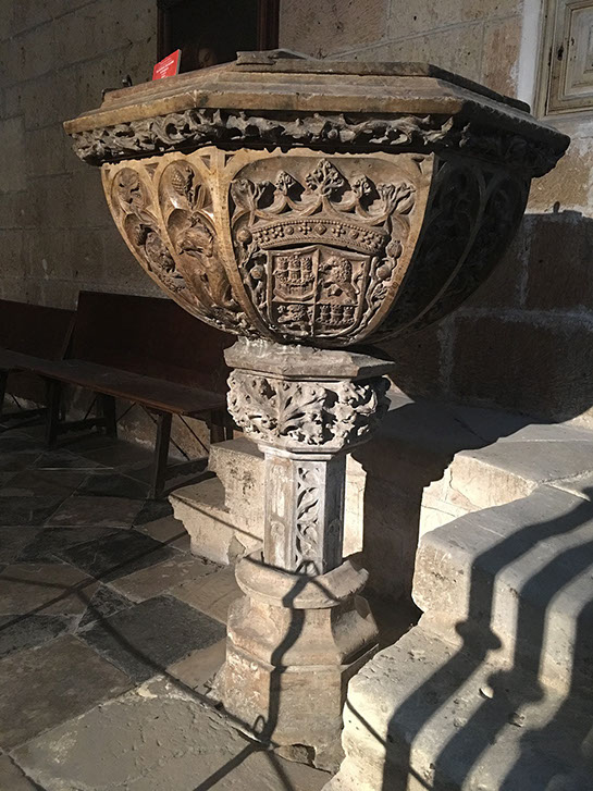Pila bautismal trasladada de la antigua Catedral y que hoy se encuentra en la capilla de Santa Bárbara.