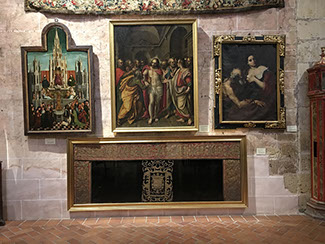 Detalle de varias de las pinturas y el frente de altar que se encuentran en el museo de la Catedral.