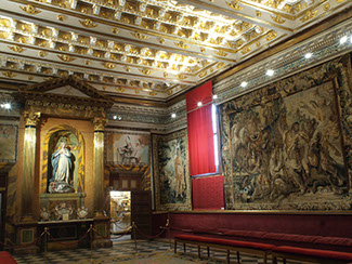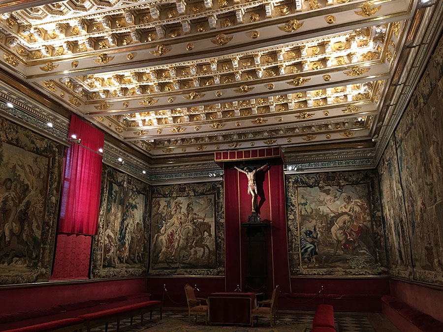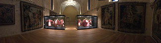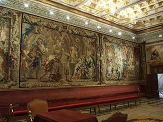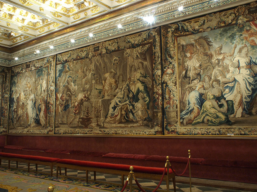 Detalle de los tapices que decoran el interior de la sala capitular y que narran la vida de la reina Zenobia de Palmira.