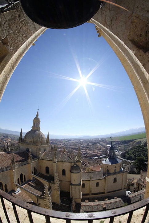 Vista de la Catedral de la torre con un objetivo “ojo de pez”.