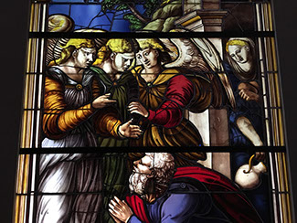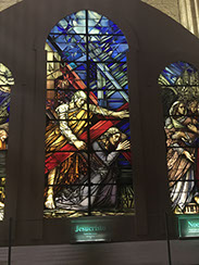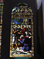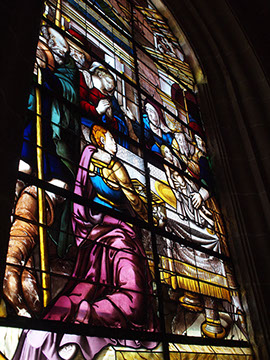 Vidriera que muestra el pasaje de la presentación en el templo.
