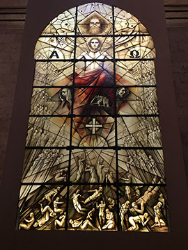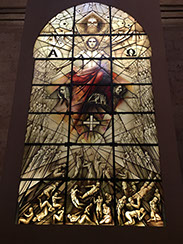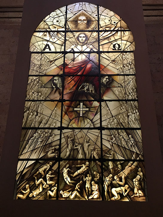 Nueva vidriera creada por Muñoz de Pablos que representa el Juicio Final y que será colocada en el vano central de los pies de la iglesia.