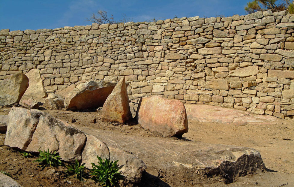 La potente defensa artificial pudo alcanzar una altura de unos 8 metros y una anchura entre 2,5 y 4,5 metros. Describe una planta de forma oval, y estaba protegida , a su vez, por un campo de piedras hincadas. El acceso al poblado era posible por dos puertas en los lados norte y este. En la actualidad están cegadas, por lo que ahora se entra por un portillo que parece de factura contemporánea.