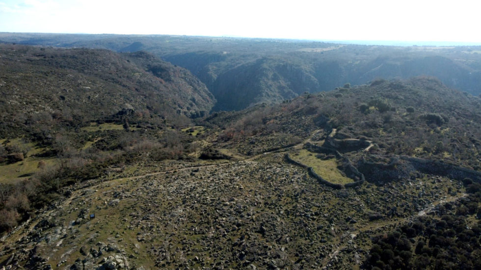En un meandro del río Huebra, en su confluencia con el arroyo Grande, se ubican los restos de lo que fue el poblado vettón. Cuenta con una muralla, construida con granito en seco, en las zonas donde era más accesible, en los flancos norte y sudeste. El resto de su perímetro está protegido de forma natural por un acantilado de más de 100 metros.