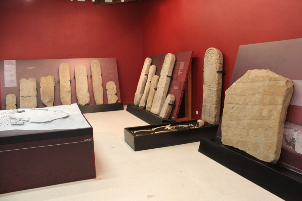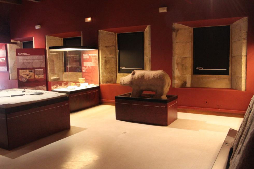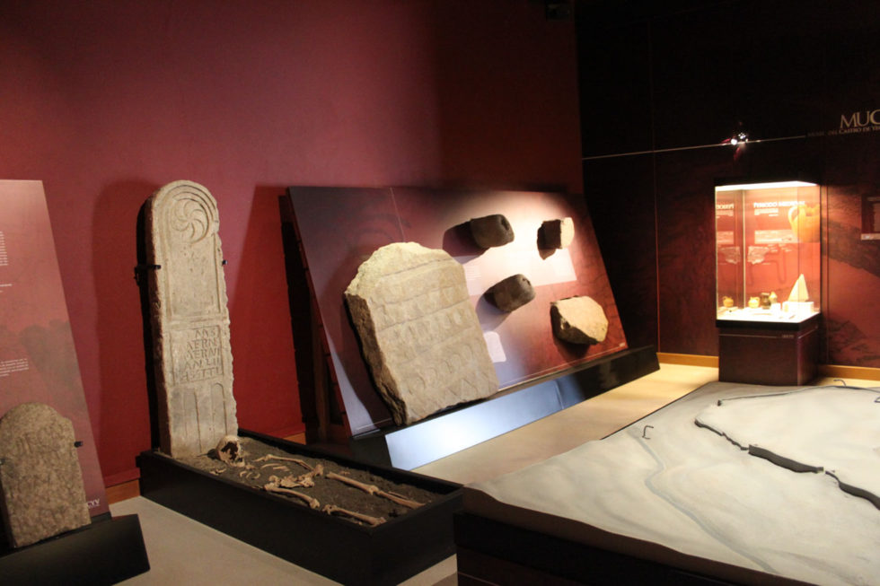 En el Aula nos espera una maqueta del yacimiento y restos de cerámicas y otros materiales de las diversas fases históricas en el que el castro estuvo habitado. En la colección arqueológica sobre sale un nutrido conjunto de estelas romanas de la necrópolis del siglo I mencionada anteriormente. Pero si en algo resulta original el Aula, es que en ella se encuentra la mejor y más variada colección conocida de arte vettón en piedra. Un espectacular conjunto en el que hay grabados de animales, un verraco y las impresionantes esculturas de cabezas humanas a las que se denomina “cabezas cortadas”. Los cráneos de piedra para algunos evocan la tradición celta de custodiar la cabeza del enemigo. Para otros muchos es una representación de la divinidad que proporciona protección.