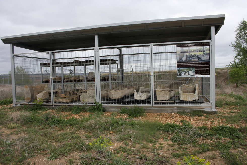 Al realizar labores agrícolas en una de las múltiples parcelas que ocupa el yacimiento se hallaron unas estructuras que se han podido identificar como parte de un edificio termal romano. Como es habitual en este tipo de establecimientos públicos, se distinguen varios momentos constructivos consecuencia de sucesivas reformas. El peor conocido es el más antiguo, ya que sobre él se produce una profunda reforma en el siglo II d. C., coincidiendo con la época de auge de la ciudad romana.