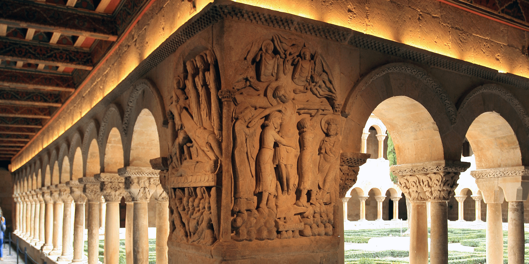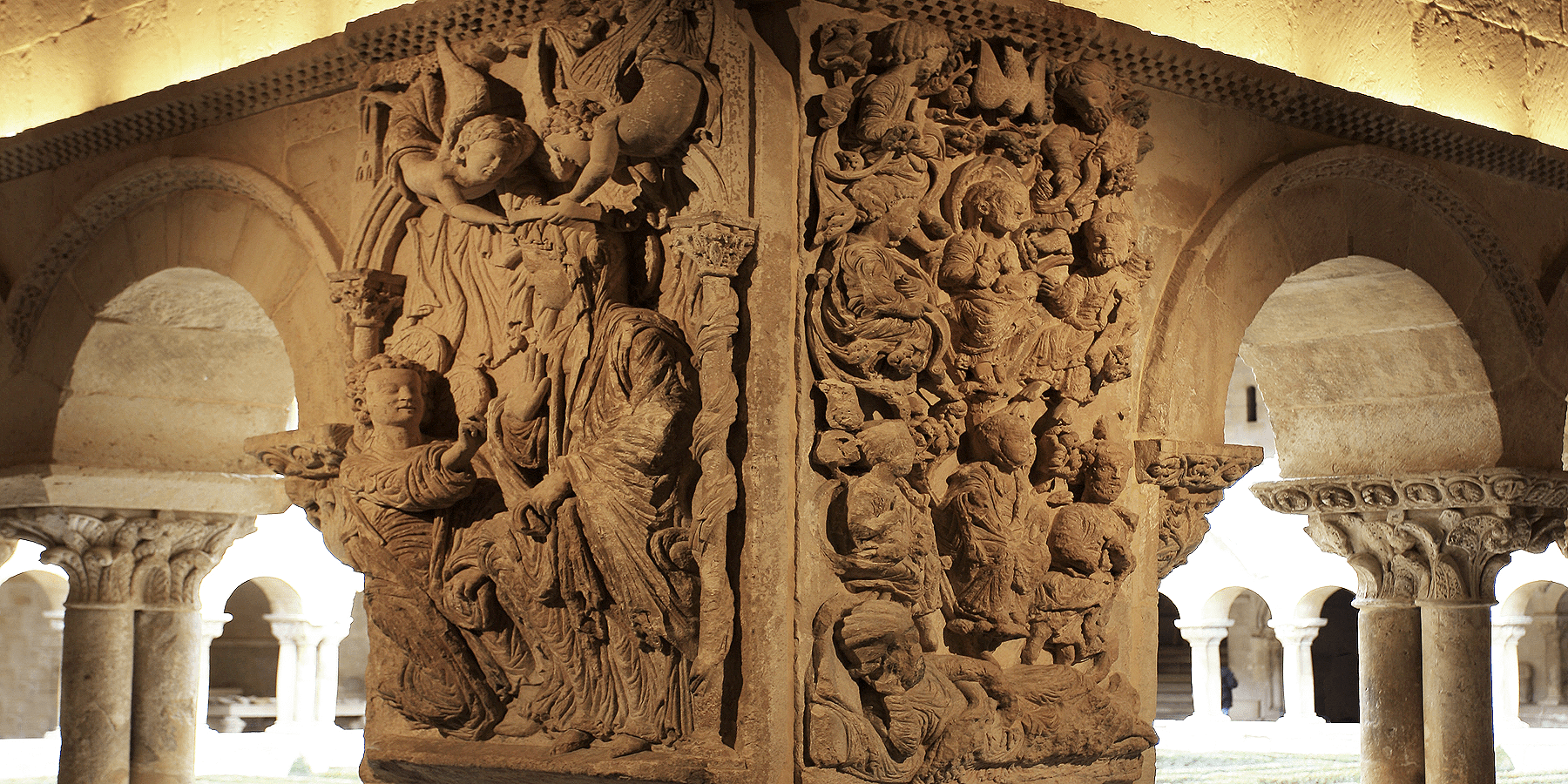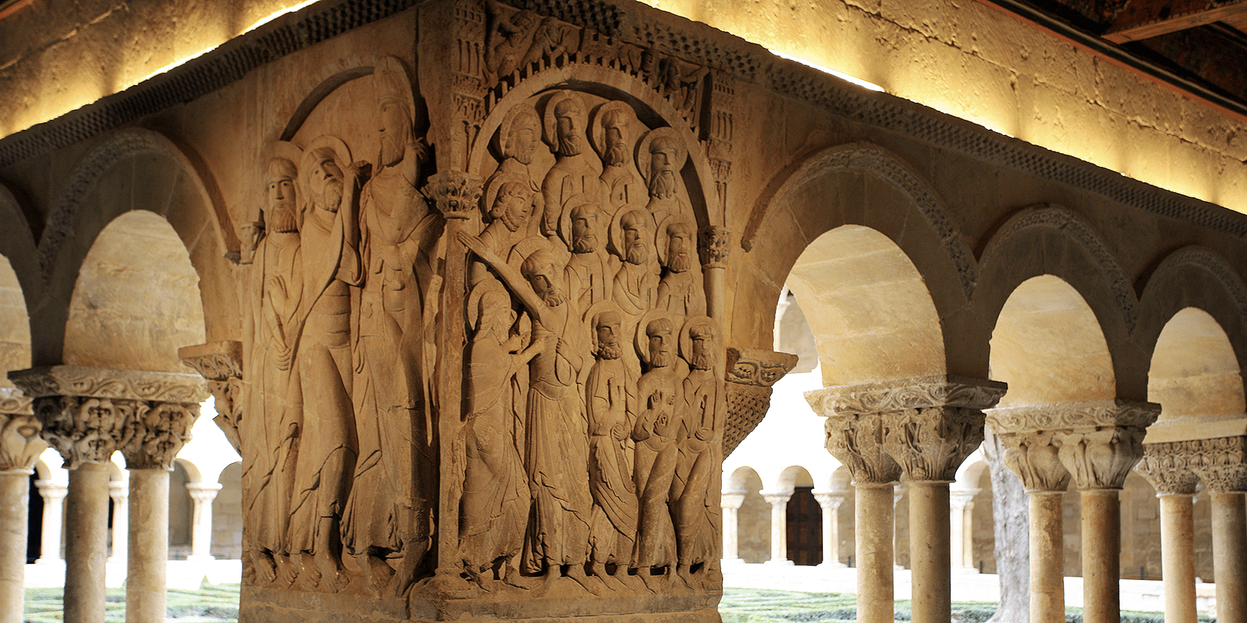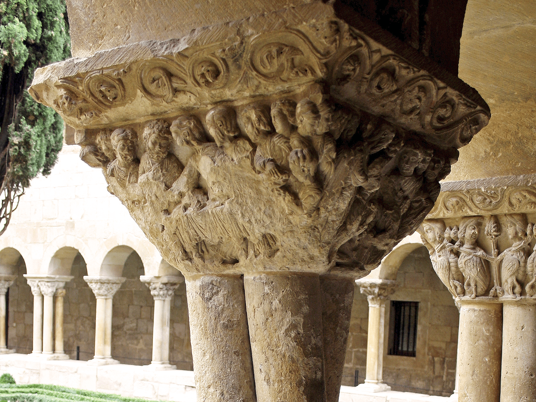 En los machones angulares, escenas de la muerte, resurrección y glorificación de Cristo incidían en su necesidad de mortificación. Los capiteles, mediante la figura animal, según tradiciones literarias vigentes en la Edad Media, reflejaban la conducta humana con cualidades y defectos y, constituían, en suma, un espejo perfecto donde los monjes podían contrastar sus anhelos de regeneración y virtud.
