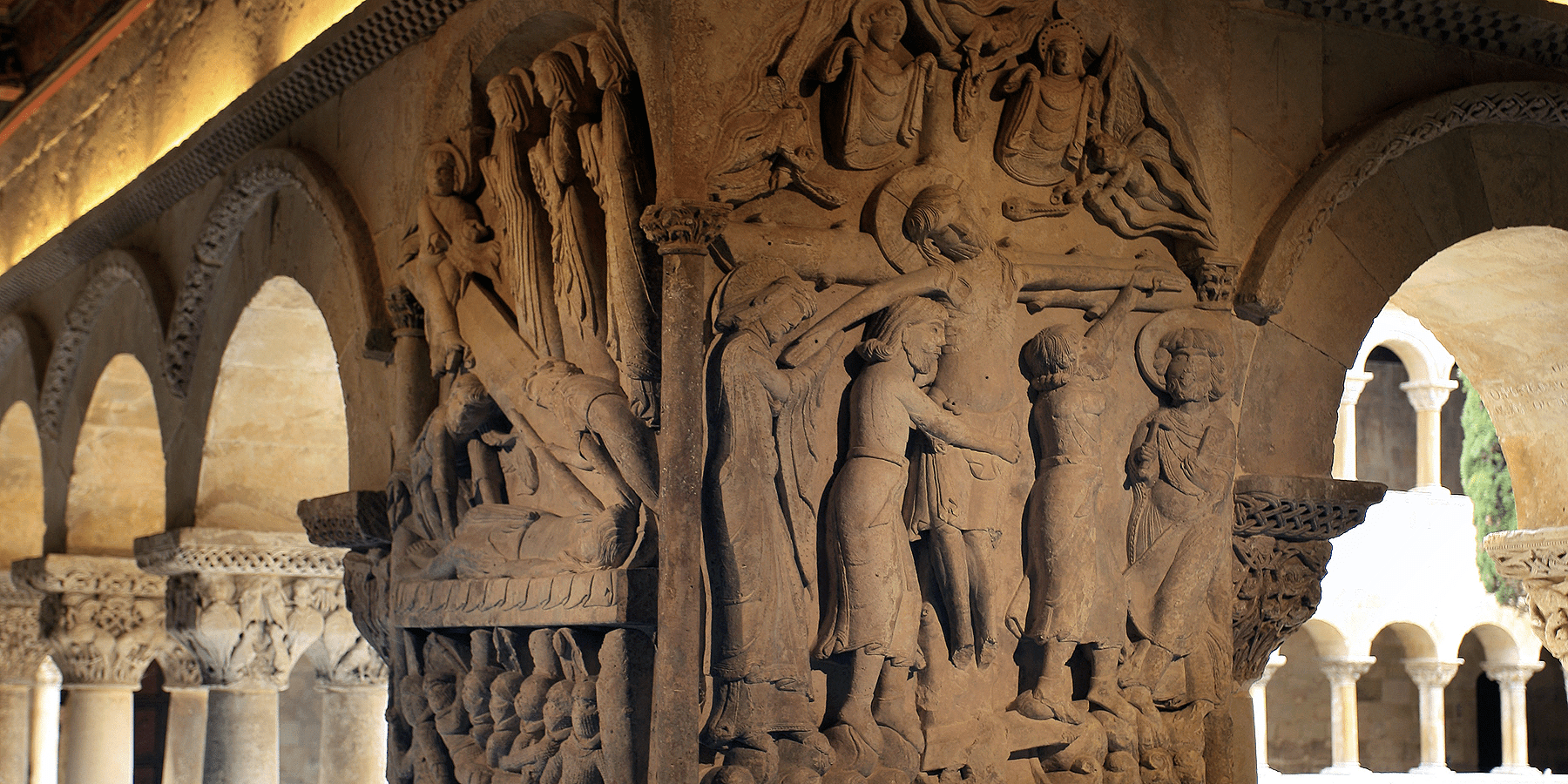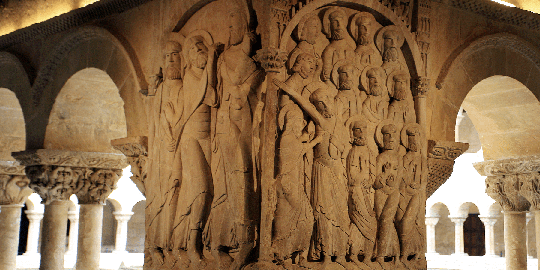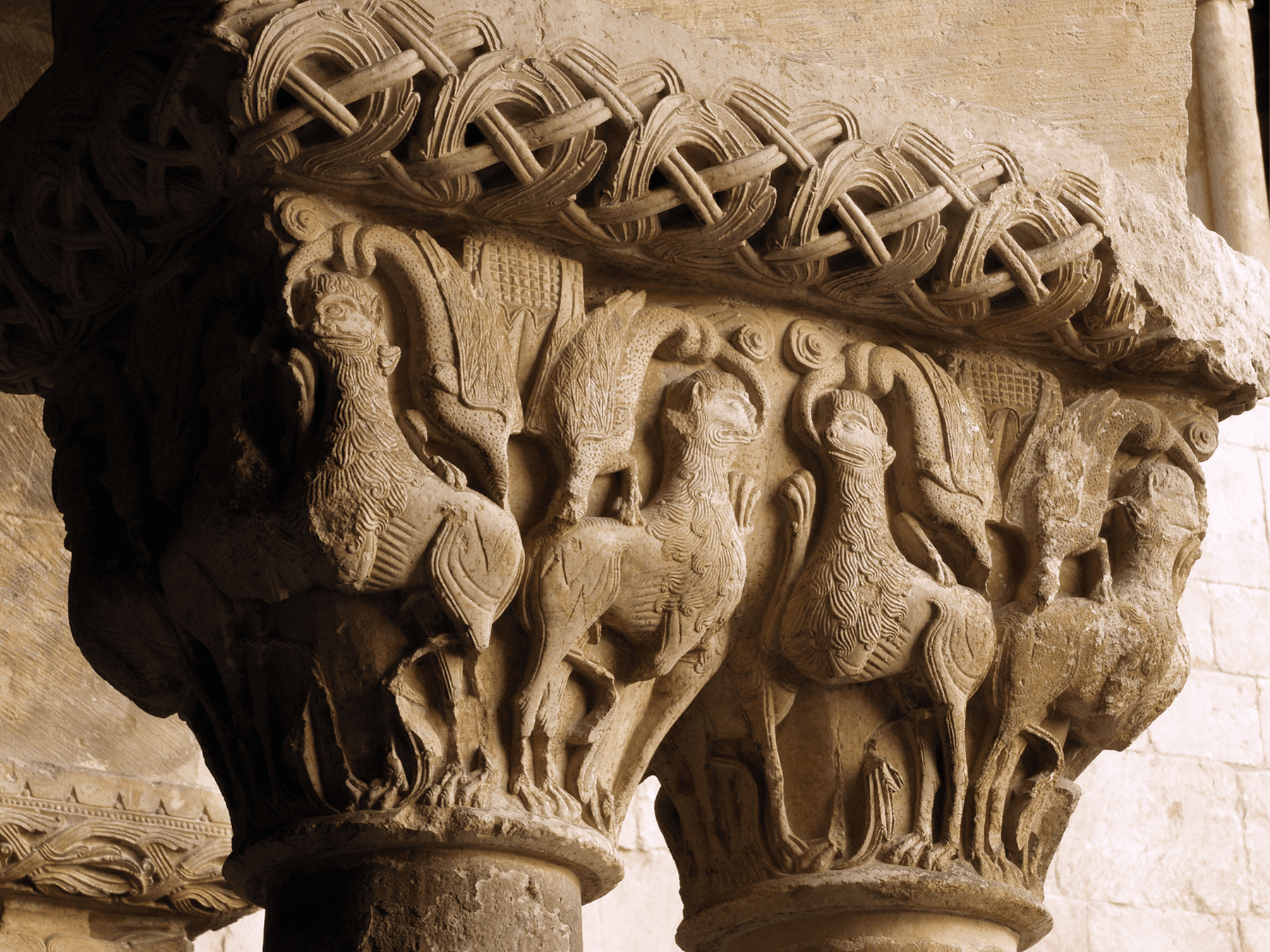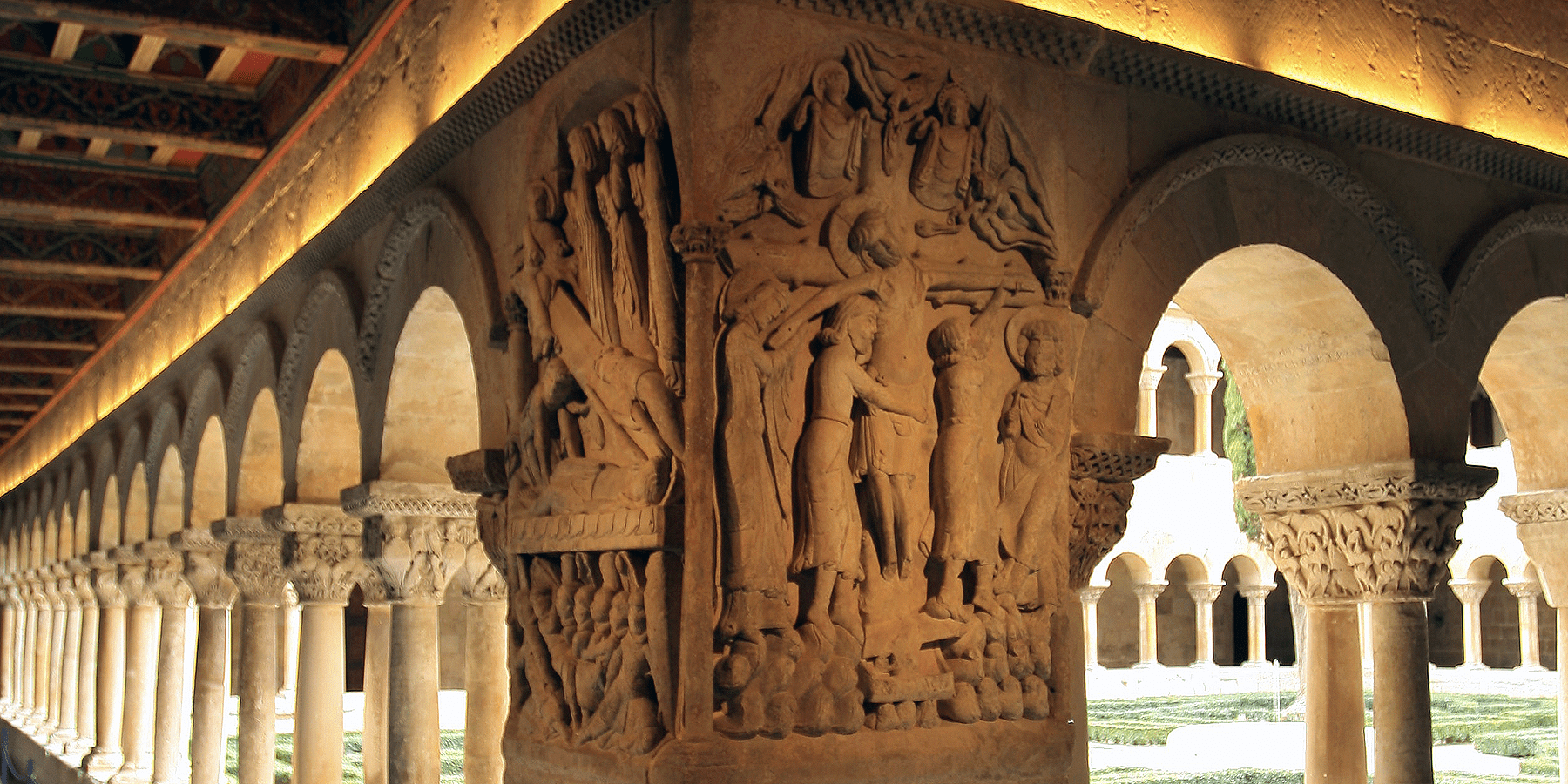 En los machones angulares, escenas de la muerte, resurrección y glorificación de Cristo incidían en su necesidad de mortificación. Los capiteles, mediante la figura animal, según tradiciones literarias vigentes en la Edad Media, reflejaban la conducta humana con cualidades y defectos y, constituían, en suma, un espejo perfecto donde los monjes podían contrastar sus anhelos de regeneración y virtud.