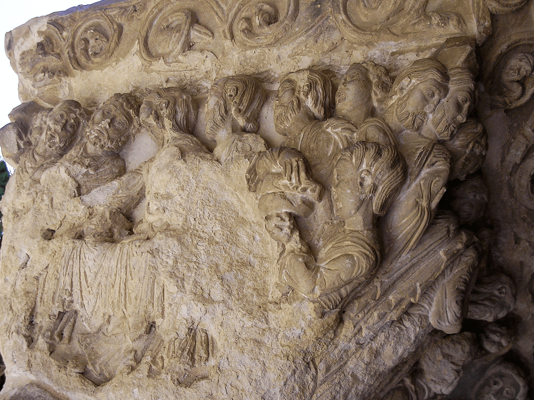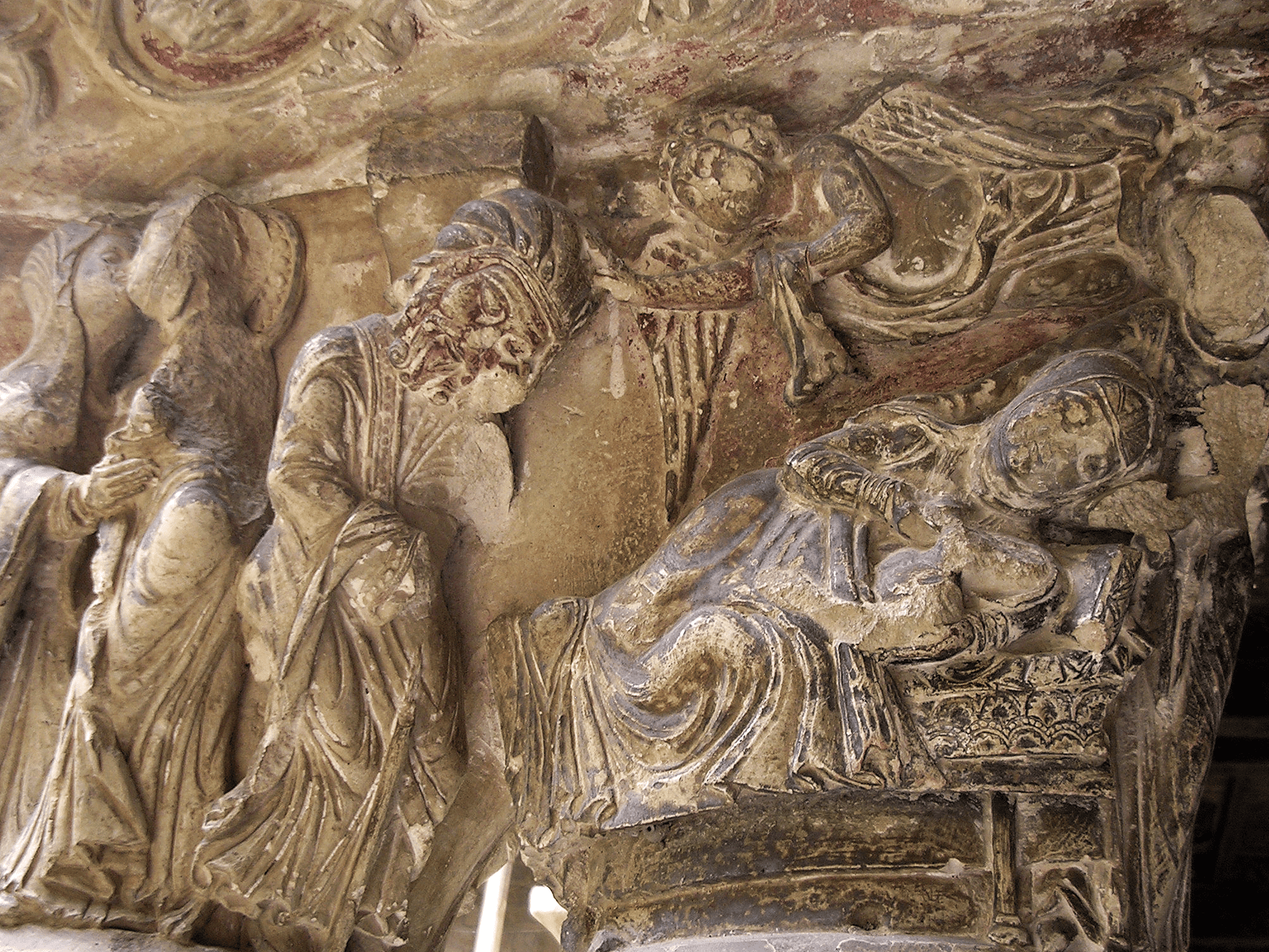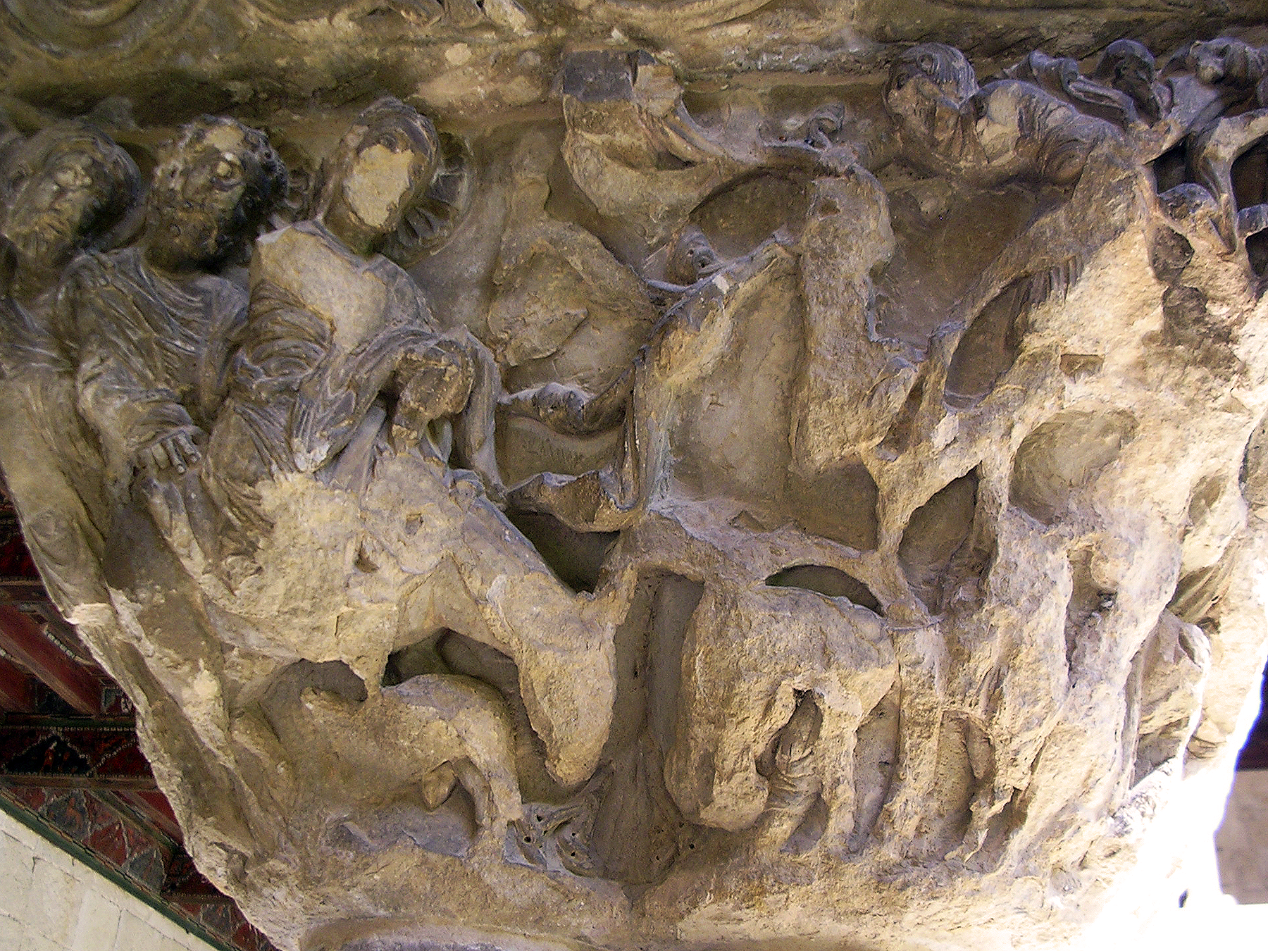 Mutilado en exceso, el capitel dedicado a la Pasión apenas deja entrever sus escenas: la Entrada de Cristo en Jerusalén, la Santa Cena y el Lavatorio de los pies.