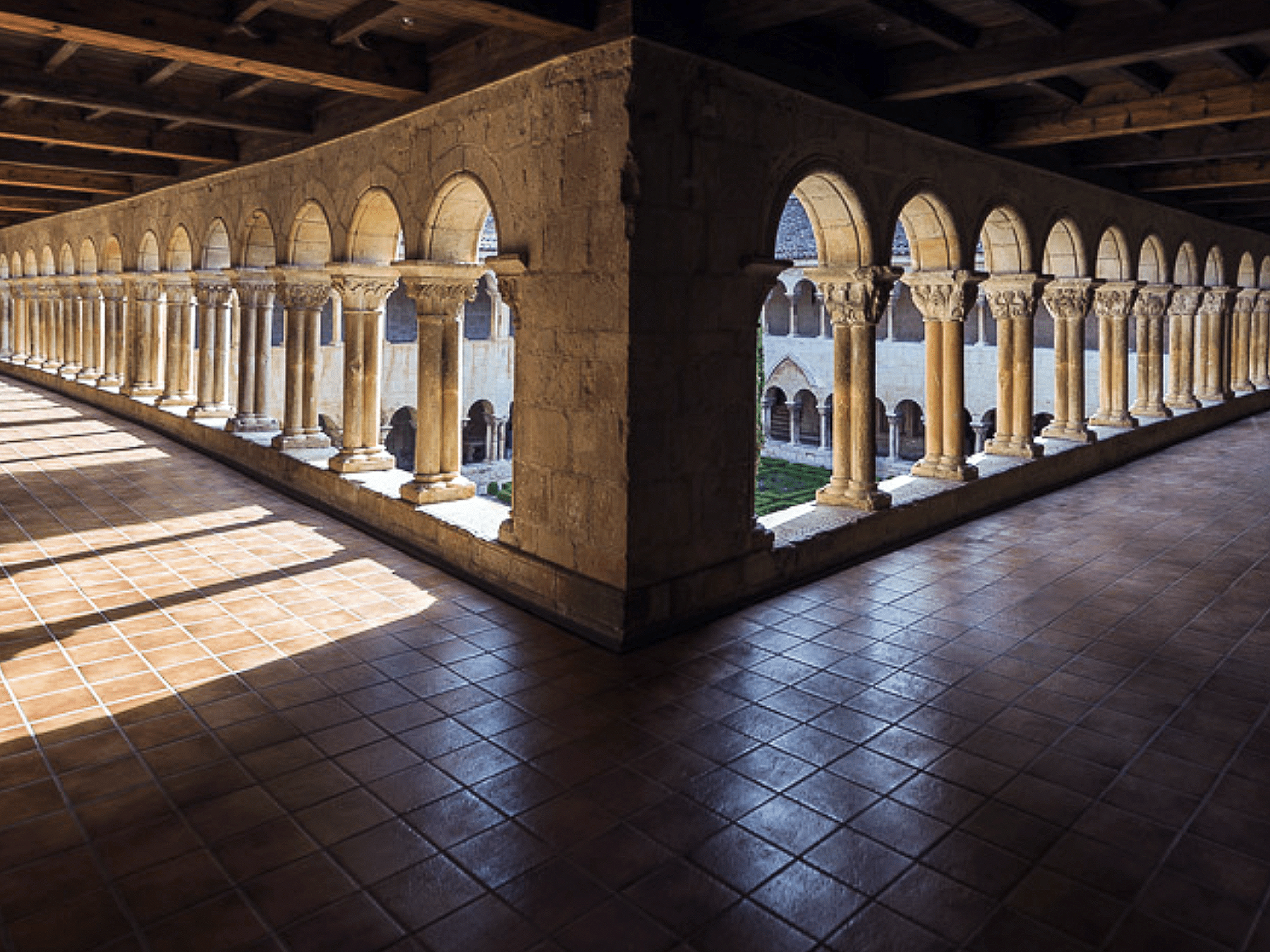 El claustro de un monasterio arquitectónicamente es un espacio convergente y de comunicación entre las distintas dependencias monásticas, en torno al cual se organizan la vida y las distintas ocupaciones de los monjes. A la vez es un ámbito para la contemplación, el descanso y la reflexión. Es un espacio cerrado y abierto a la vez en el que se combina la arquitectura, la escultura y el terreno cultivado que conforma el jardín central.