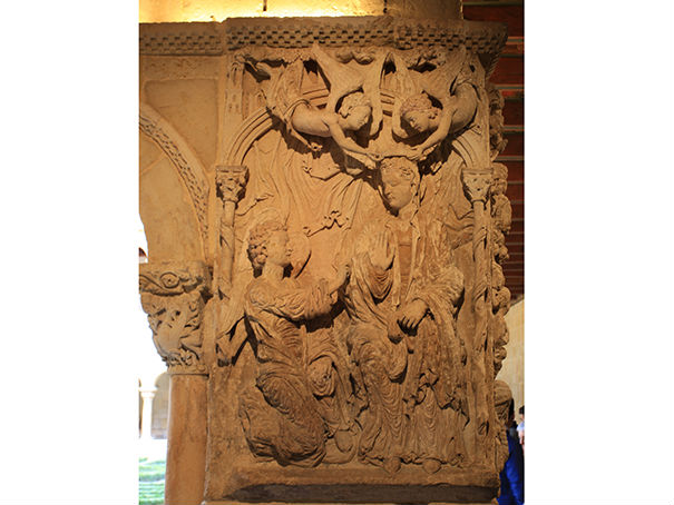 El segundo taller realizó el altorrelieve del pilar SO (G y H) del claustro, que representa La Anunciación (G) y el Árbol de Jesé (H).
