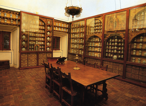 El botamen cuenta con unos 400 recipientes, de diversas formas, realizados en la típica loza blanca, con decoración azul, de los alfares de Talavera. Son piezas de encargo para Silos y cuentan con el escudo del monasterio. Son también destacables los anaqueles, los hornos, alambiques y retortas.