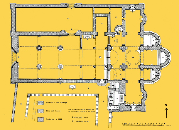 En 1732 se prolongó el crucero y bajo un baldaquino se colocó la urna con los restos de Santo Domingo, obra del padre benedictino Pedro Martínez de Cerdeña.